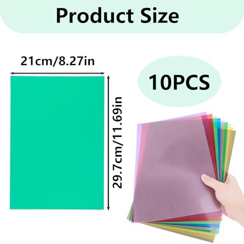 10Pcs Coloured Dyslexia Overlays Aids A4 for Adults Children PVC Guided Reading Reduce Visual Stress Light Plastic Overlays Dyslexia Transparent Sheets Assistive Tools for ADHD Irlens Syndrome